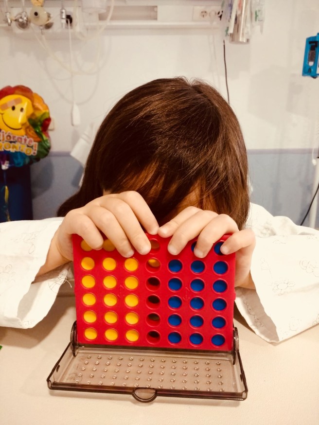 La suerte de ser una familia tan grande y unida es que para poder organizar a sus hermanos Oli tiene tíos, primos, abuelos y amigos deseando quedarse con ella y acompañarla mientras sus padres no podemos estar! Como ahora está un poco “ refunfuñona” no le ha gustado nada que me vaya del hospital pero ella se queja y enseguida accede y dice que si! Ahí es cuando más orgullosos estamos de ella , cuando veo que pone las necesidades de otros antes de las suyas propias!!!!