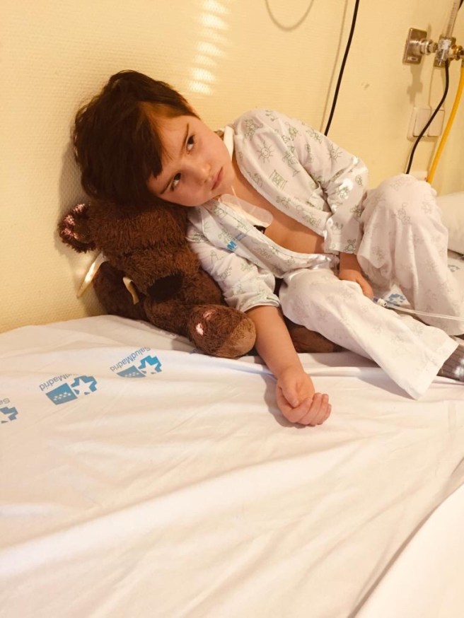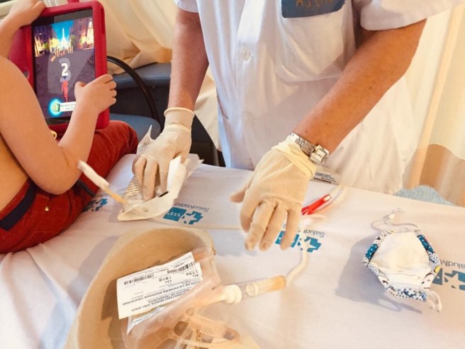 Se ha despertado súper parlanchina y encantada, nos hemos ido al hospital y seguía encantada hasta que hemos llegado al momento de volver a poner la aguja… Ahí se han desatado los elementos y las sonrisas se han cambiado por lágrimas, su miedo particular y unos gritos de aquí te espero… Solo son 2 minutos pero los lleva bastante mal, luego se vuelve a calmar y tan feliz!