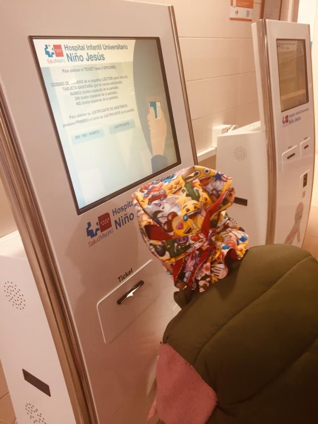 Nos ha costado tanto levantarnos que no hemos llegado al hospital hasta las 9:35, incluso nos han reñido un poquito 😬😬😬