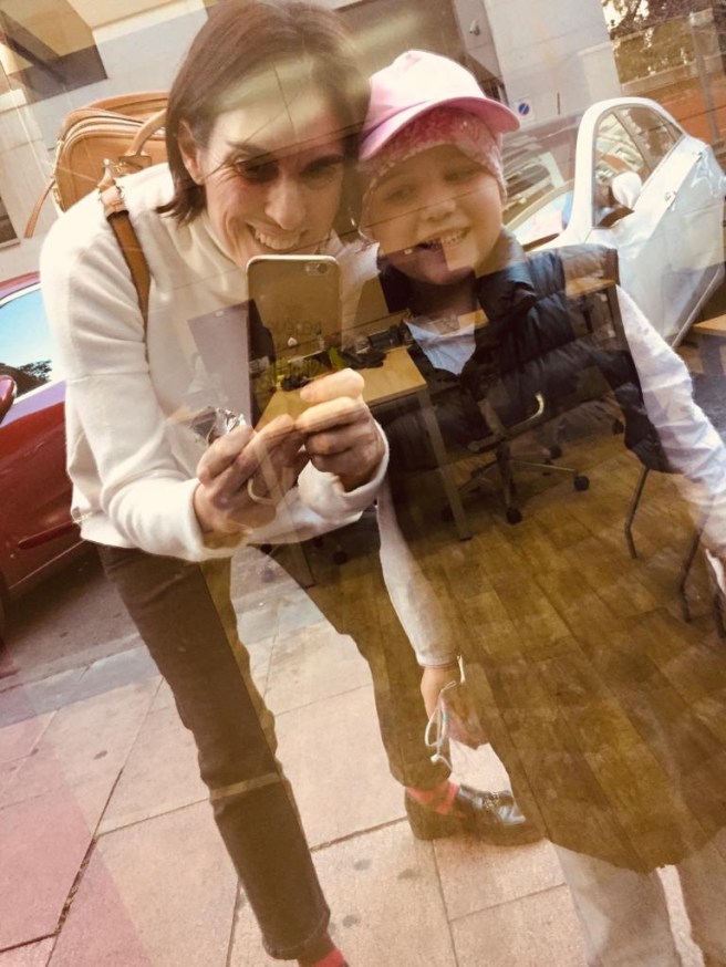 Los niños no se dan cuenta del impacto visual que provocan; algunos por estar pelones, otros por ir en sillas de ruedas o simplemente llevar la bomba atada a unos cables, a ellos se les olvida lo que continuamente vemos el resto. Estos últimos días de Oli, me he dado cuenta más que nunca, cómo la gente nos mira por el hecho de no tener pelo. Oli no ve nada raro en ella misma, pero para los demás, y más todavía si no te conocen, es un poco de shock y cuánto más mayor eres más shock produce.