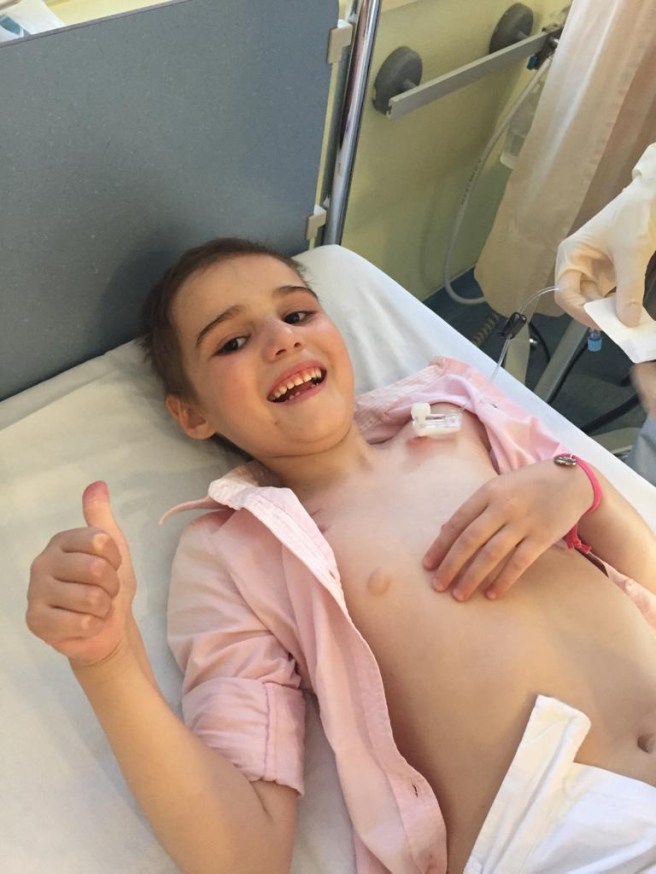 La llegada al hospital la hizo con desgana. No estaban sus enfermeras preferidas, nos encontramos con amigos pero ella no estaba para nadie. A pesar de eso se puso la aguja casi sin rechistar y cuando le dieron su zumo de piña conseguimos una sonrisa.