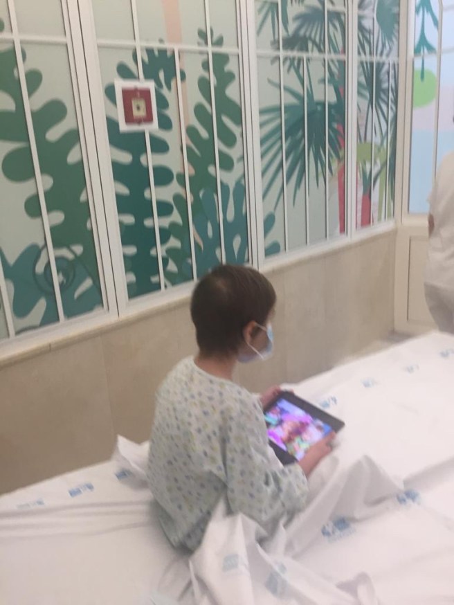 Hoy sí que íbamos contentos. Oli tenía, si Dios quiere, LA ÚLTIMA PUNCIÓN. Un paso más, otra etapa finalizada; se acabaron las quimios en la médula y todo lo que ello conlleva. Como siempre su paseo hasta la UVI lo ha hecho sentada en la cama, manejando su barco. Ella no se tumba y una vez sedada intenta quedarse sentada hasta que cae… Hoy hablando con la lengua de trapo por la sedación intentaba explicarnos a todos quien era Siri.